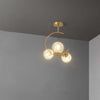 - Le linee pulite e la silhouette contemporanea di questa lampada a sospensione offrono una perfetta combinazione di forma e funzione. I globi circolari, sospesi con grazia dalla cornice metallica, creano un punto focale visivo accattivante. La loro forma disperde la luce in modo uniforme, eliminando ombre dure e creando un ambiente caldo e invitante.