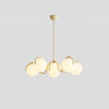 Questo lampadario lineare curvato presenta una struttura scultorea con globi di vetro bianchi, offrendo una luce morbida e uniforme—perfetto per camere da letto o soggiorni con un tocco moderno.