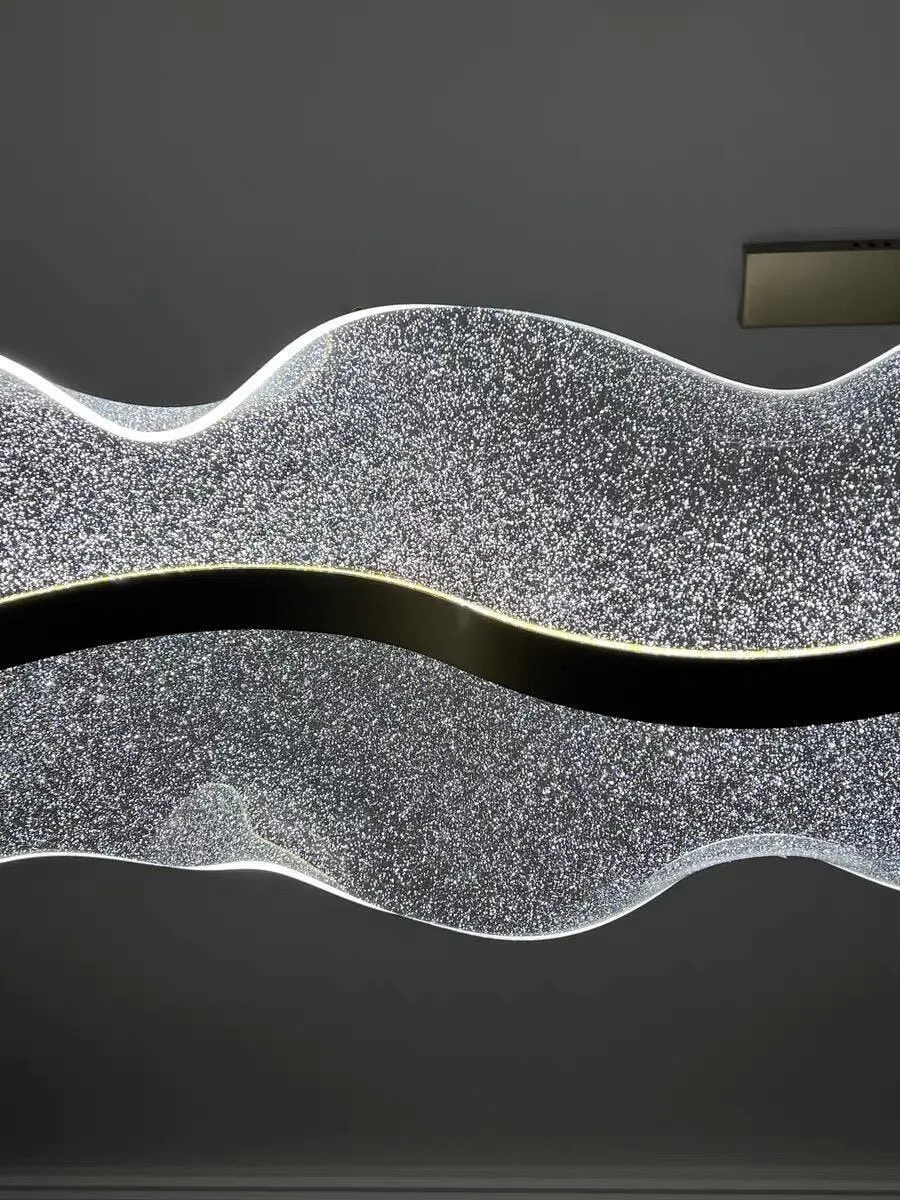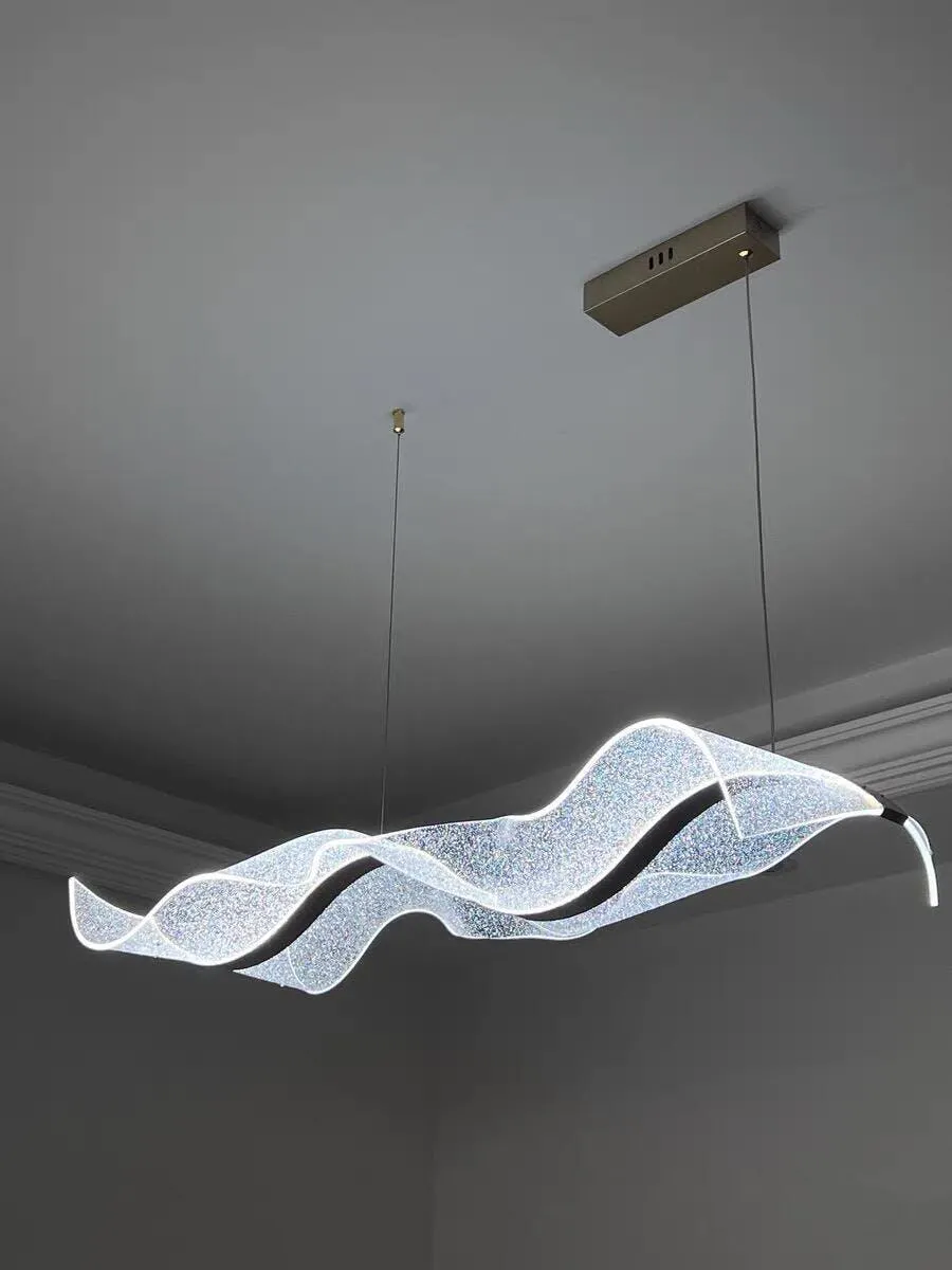 - Realizzata con la massima precisione, questa lampada a sospensione combina perfettamente acrilico e metallo per creare un capolavoro di arte della luce. La luce incorporata nella sorgente luminosa LED integrata brilla attraverso la guida luminosa, creando una luce morbida e luminosa che trasforma qualsiasi ambiente in un'oasi di calore e tranquillità.