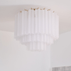 Questa lampada da soffitto è caratterizzata da strati di vetro di Murano bianco soffiato a mano con eleganti accenti dorati, che irradiano raffinatezza e fascino raffinato. Le tonalità tenui e traslucide e la forma a cascata creano un elegante punto focale per soggiorni, sale da pranzo o corridoi. Un perfetto connubio tra bellezza classica e lusso contemporaneo.